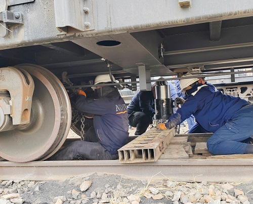 图为轮轴锁具捆绑起复设备对位