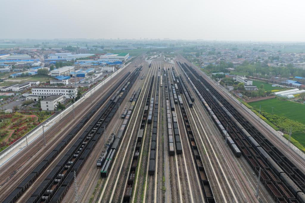 图为4月9日,一列列货物列车在新乡站南运转场集结。(国铁郑州局集团公司供图)